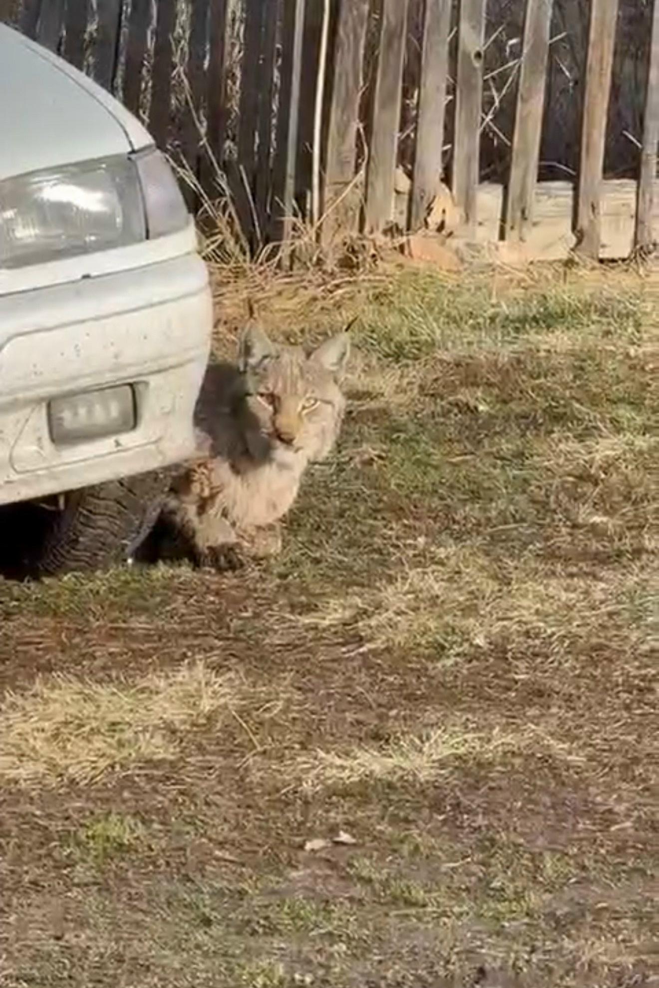 Рысь в зауральской деревне разогнала скот и укрылась под автомобилем