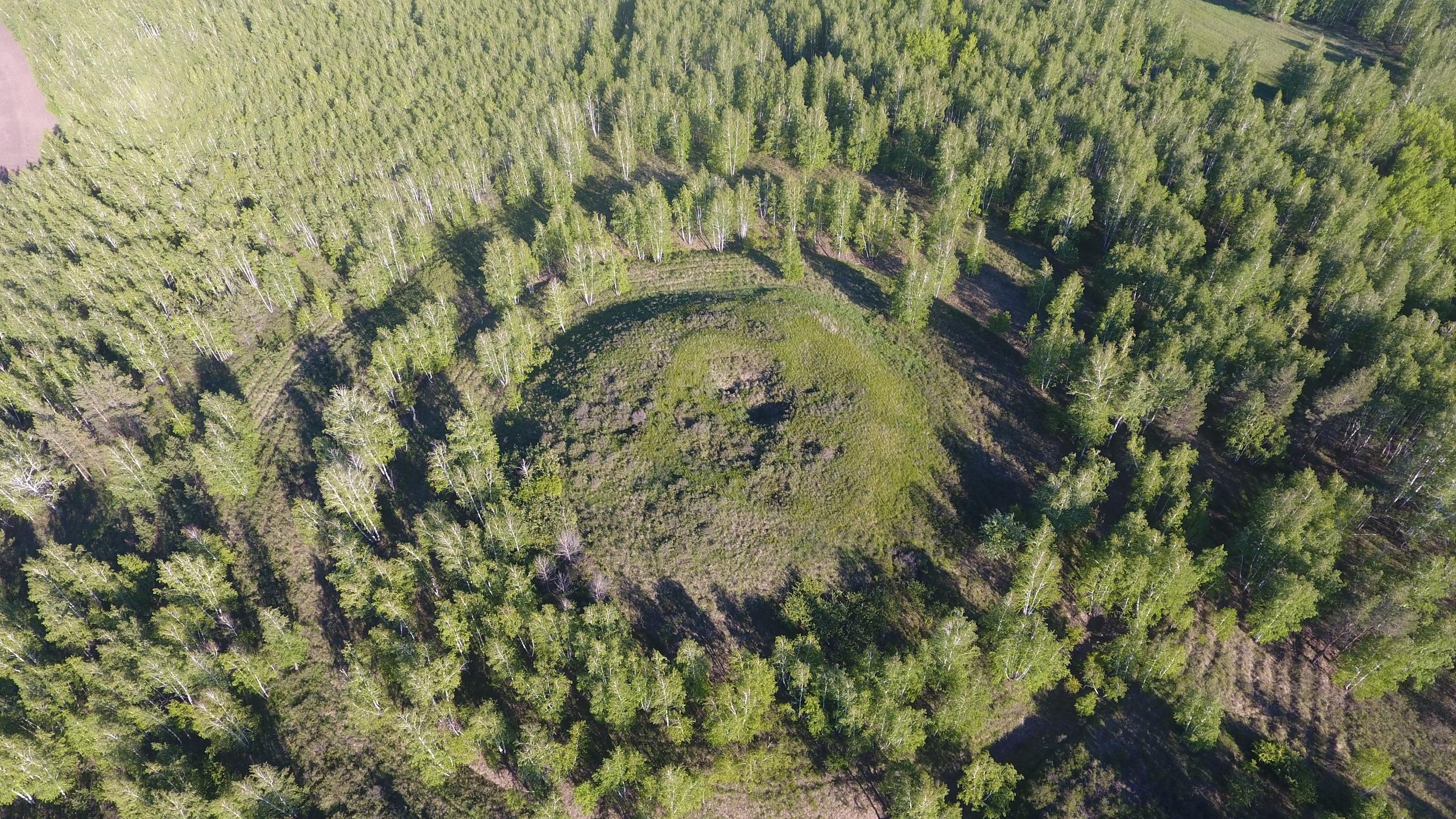 Курганная насыпь, поросшая березовым лесом, который служит естественной защитой.