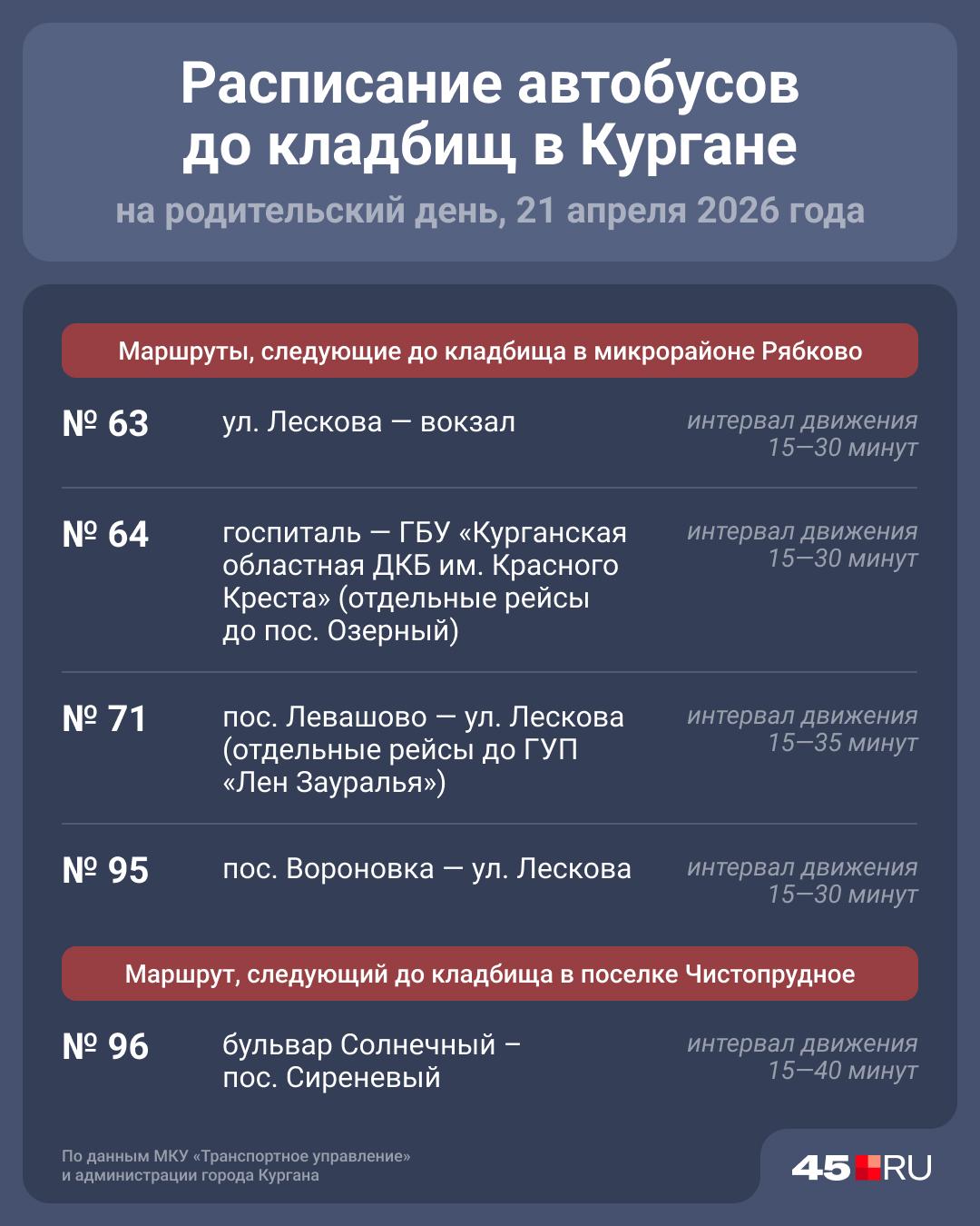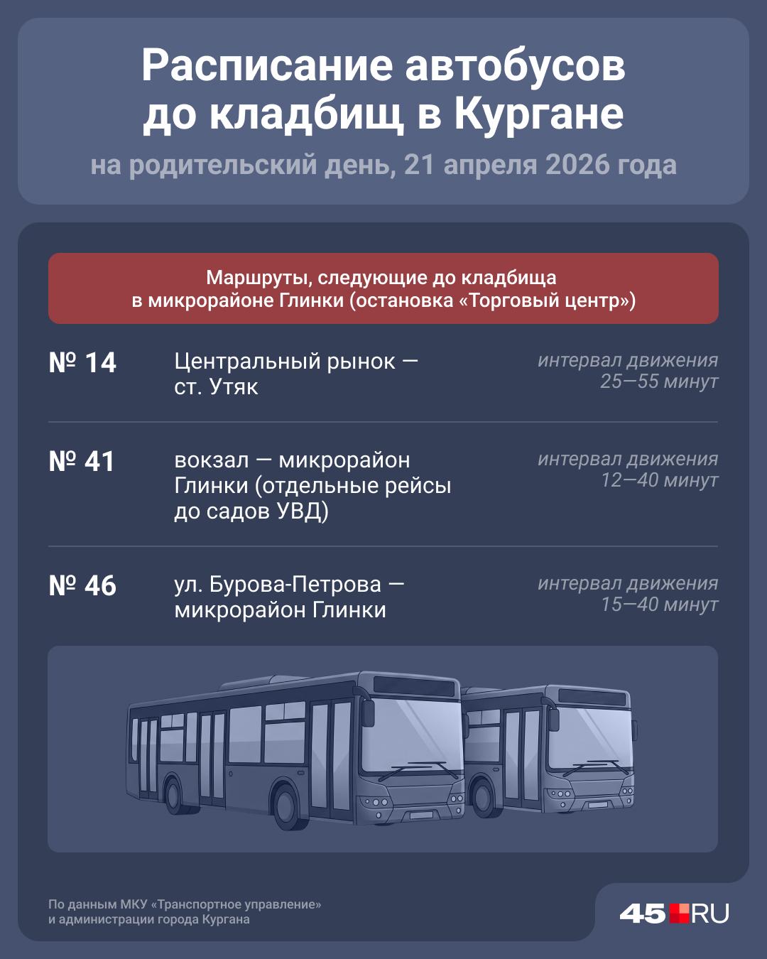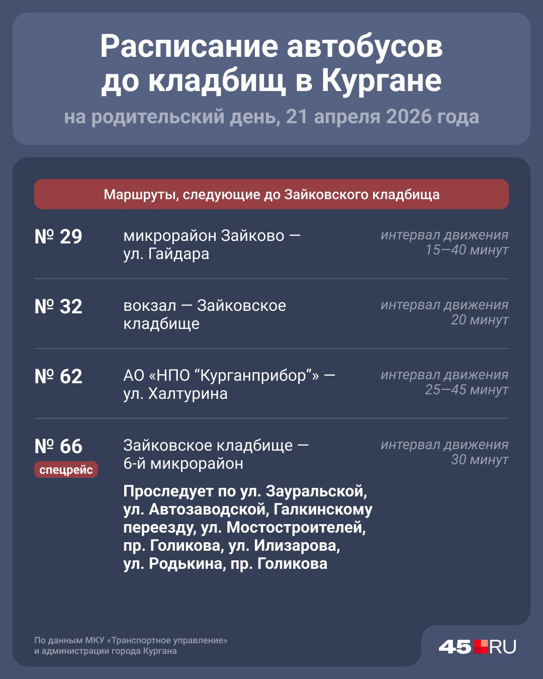 На 21 апреля, Родительский день, в Кургане запущены дополнительные автобусные маршруты до городских кладбищ.