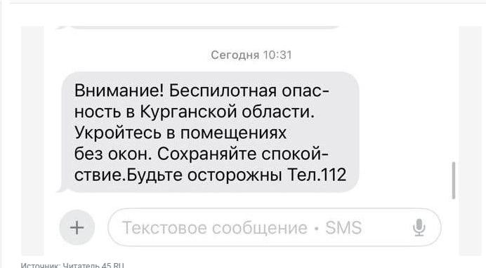 Курганцы получили СМС о беспилотной опасности