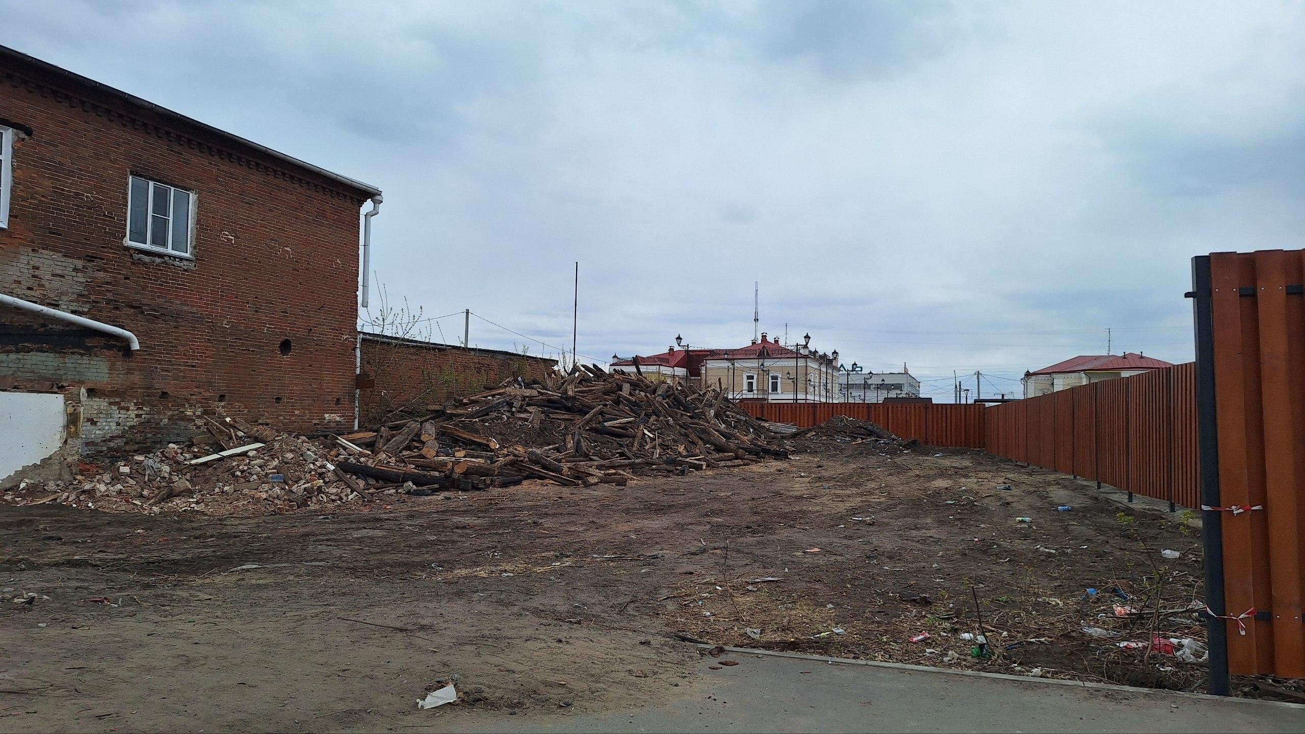В Кургане завершился демонтаж остатков исторического здания на улице Советской, 140а. Это флигель, построенный в 1900-х годах и принадлежавший А. В. Калининой. Он располагался рядом с усадьбой купца Кропанина, где сейчас работает гостиная «Репка». В 2023 году в здании произошел пожар, после чего оно долго пустовало и пришло в аварийное состояние.