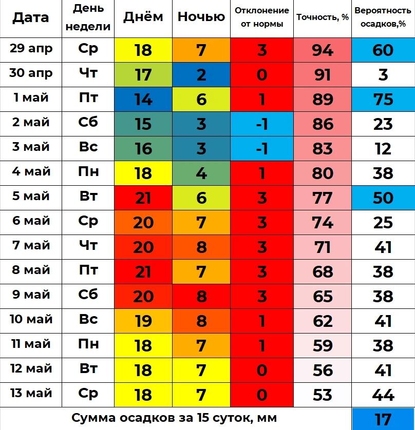 Сервис Яндекс.Погода прогнозирует днём от +12 до +14 °C и пасмурную погоду. Осадки вероятны утром и вечером.