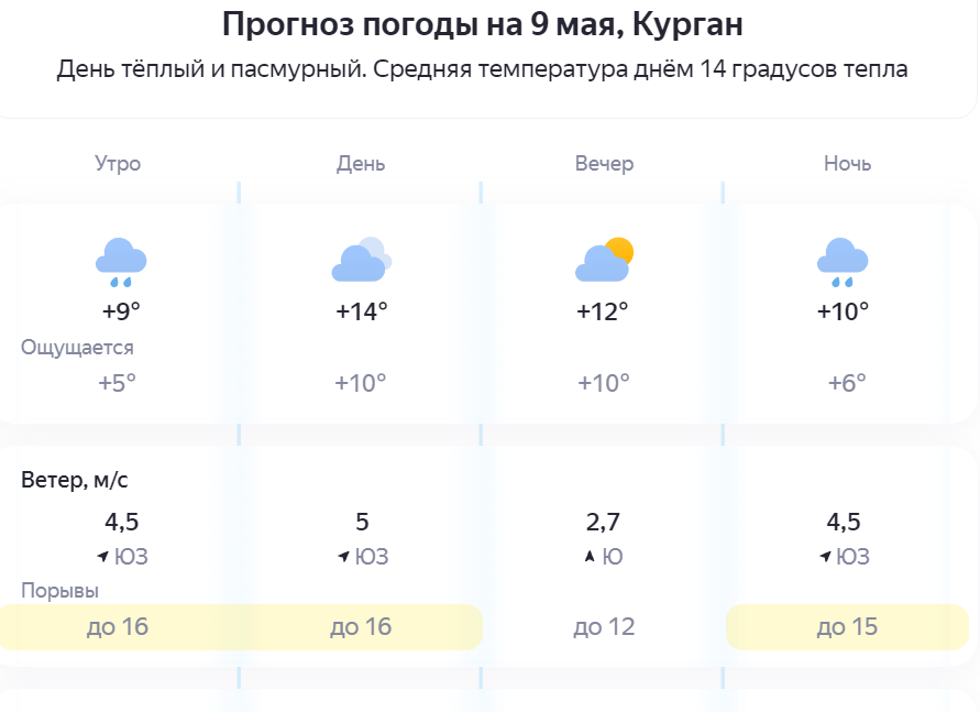 Синоптики дали прогноз на День Победы в Кургане: ожидается до +22 °C, но возможны осадки.