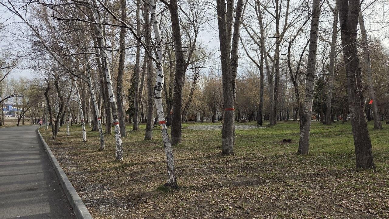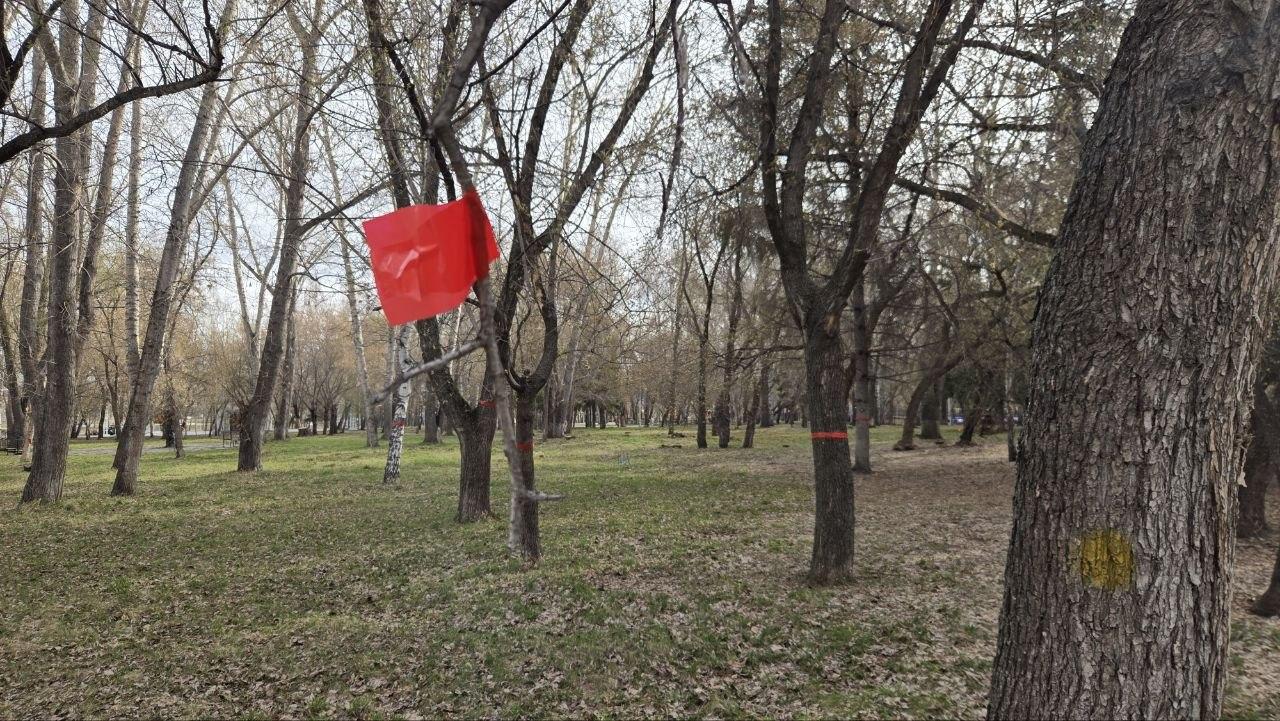 В Центральном парке культуры и отдыха Кургана на части деревьев появились красные ленты. По оценкам, метки есть на примерно пятидесяти экземплярах, многие из которых — березы.