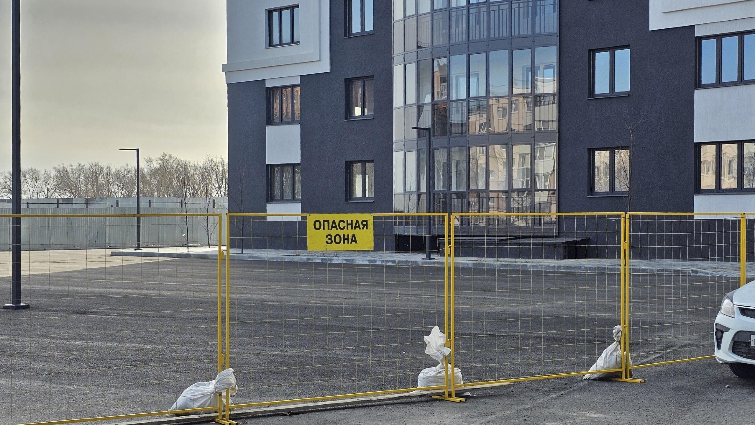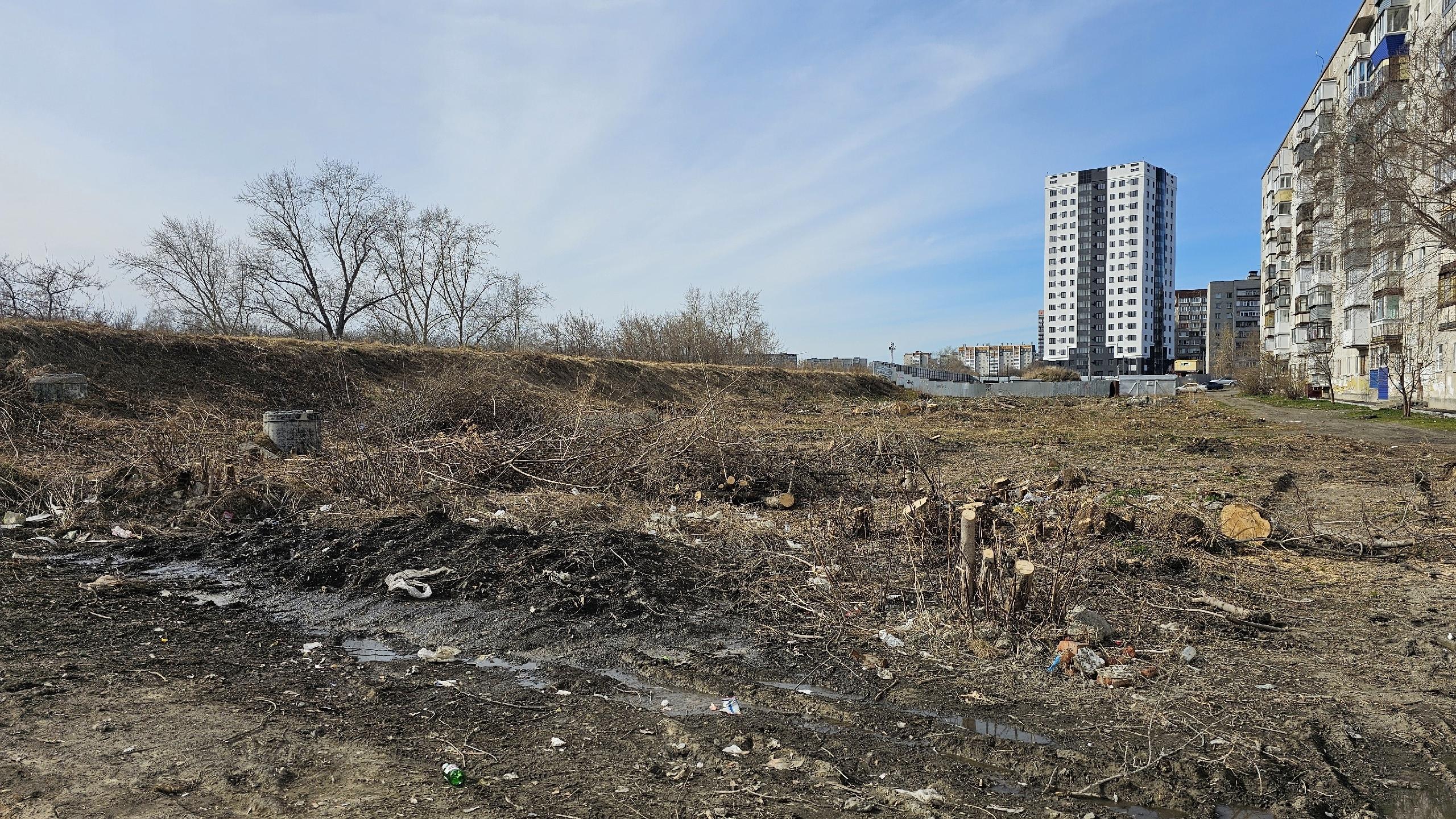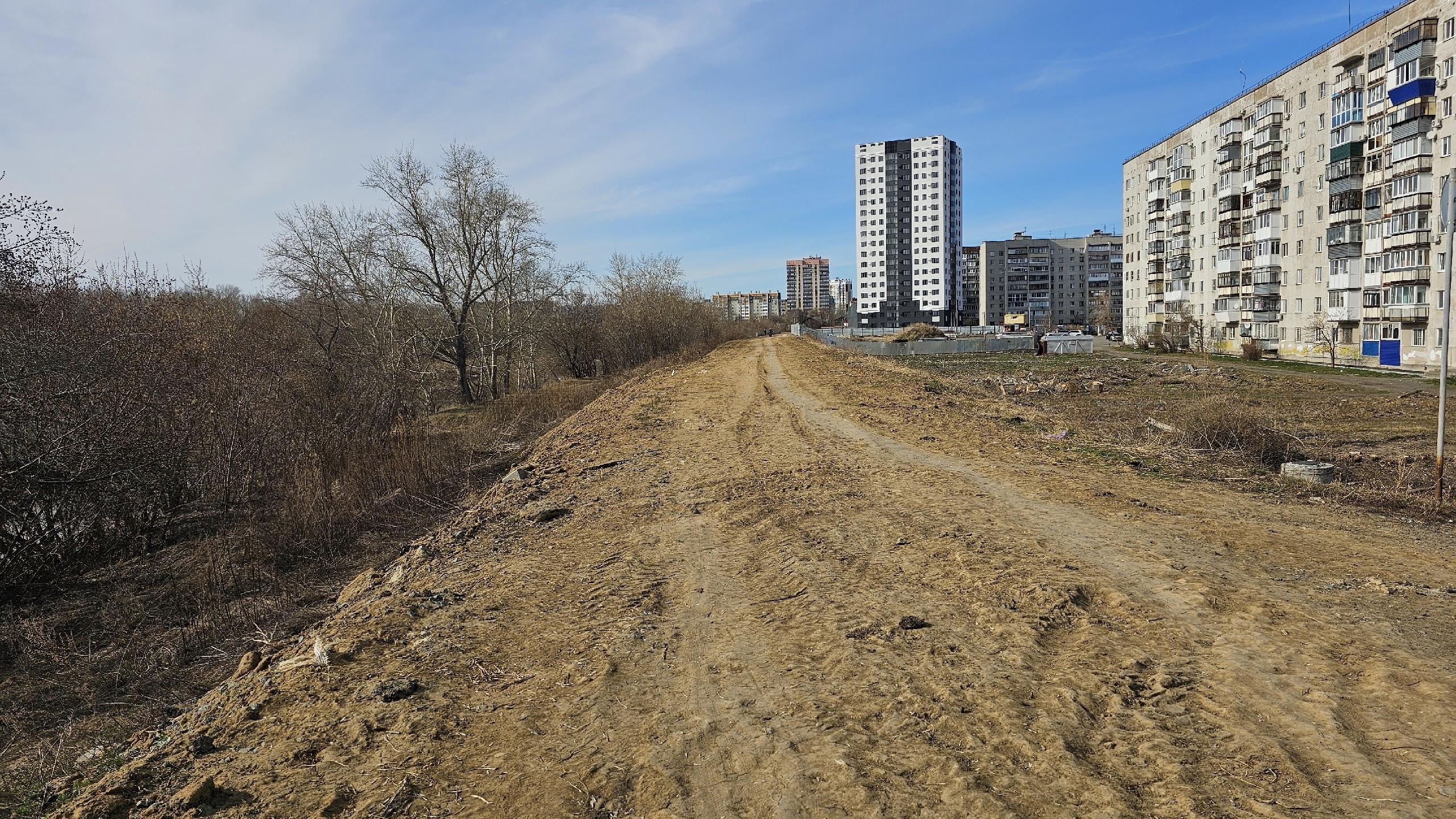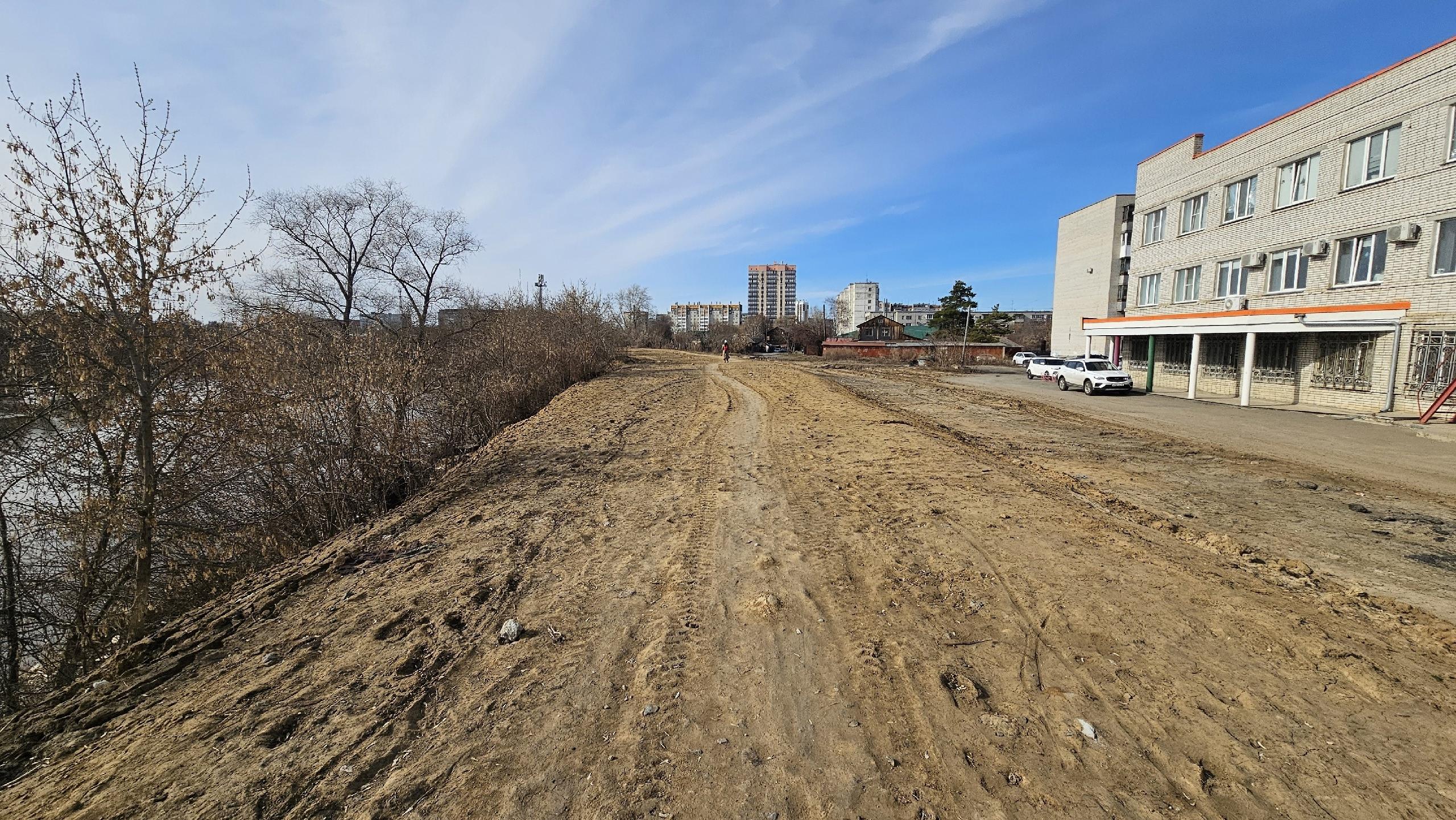 Обновляемая территория проходит вдоль жилого комплекса «Тихий берег», где ранее проводились работы по берегоукреплению. Рядом расположена пустующая высотка, огороженная забором с предупреждающими табличками «Опасная зона».