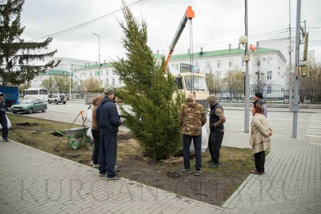 Высадка саженцев в центре Кургана.