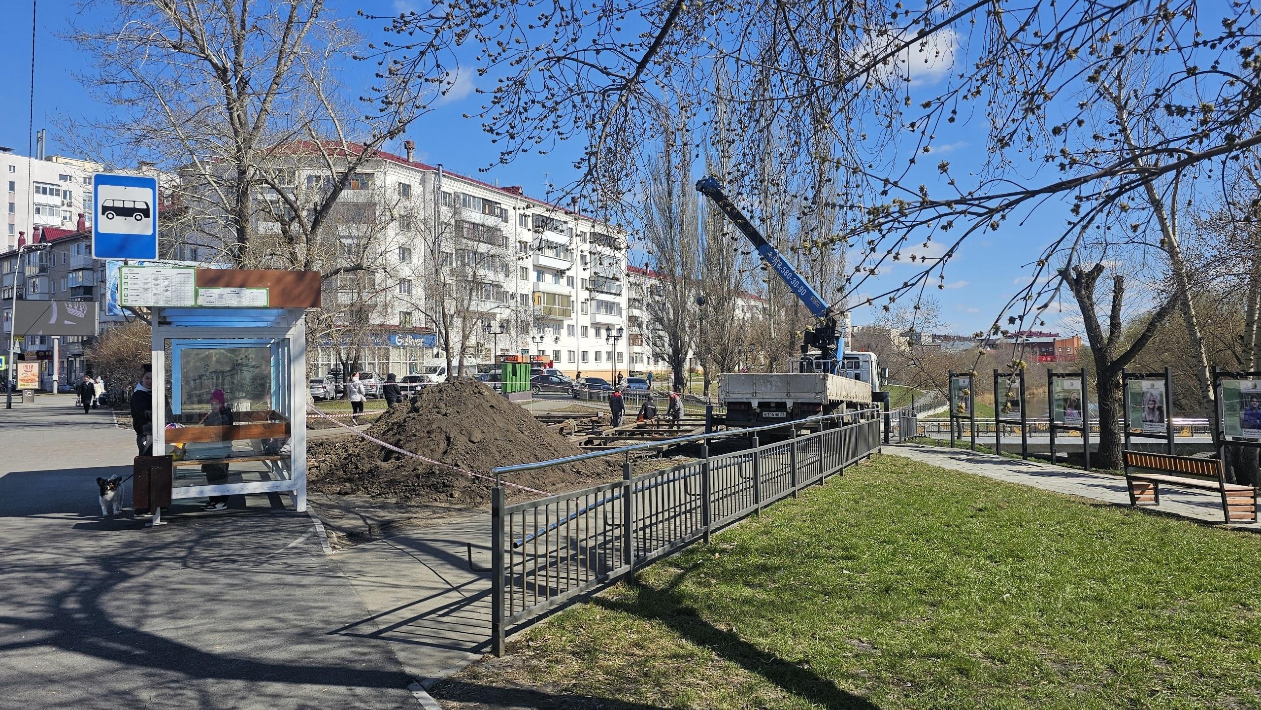 На участке у главного входа в ЦПКиО в Кургане развернулись строительные работы. Площадка, расположенная за остановкой общественного транспорта, обнесена сигнальными лентами, где уже приступили к забивке свай.