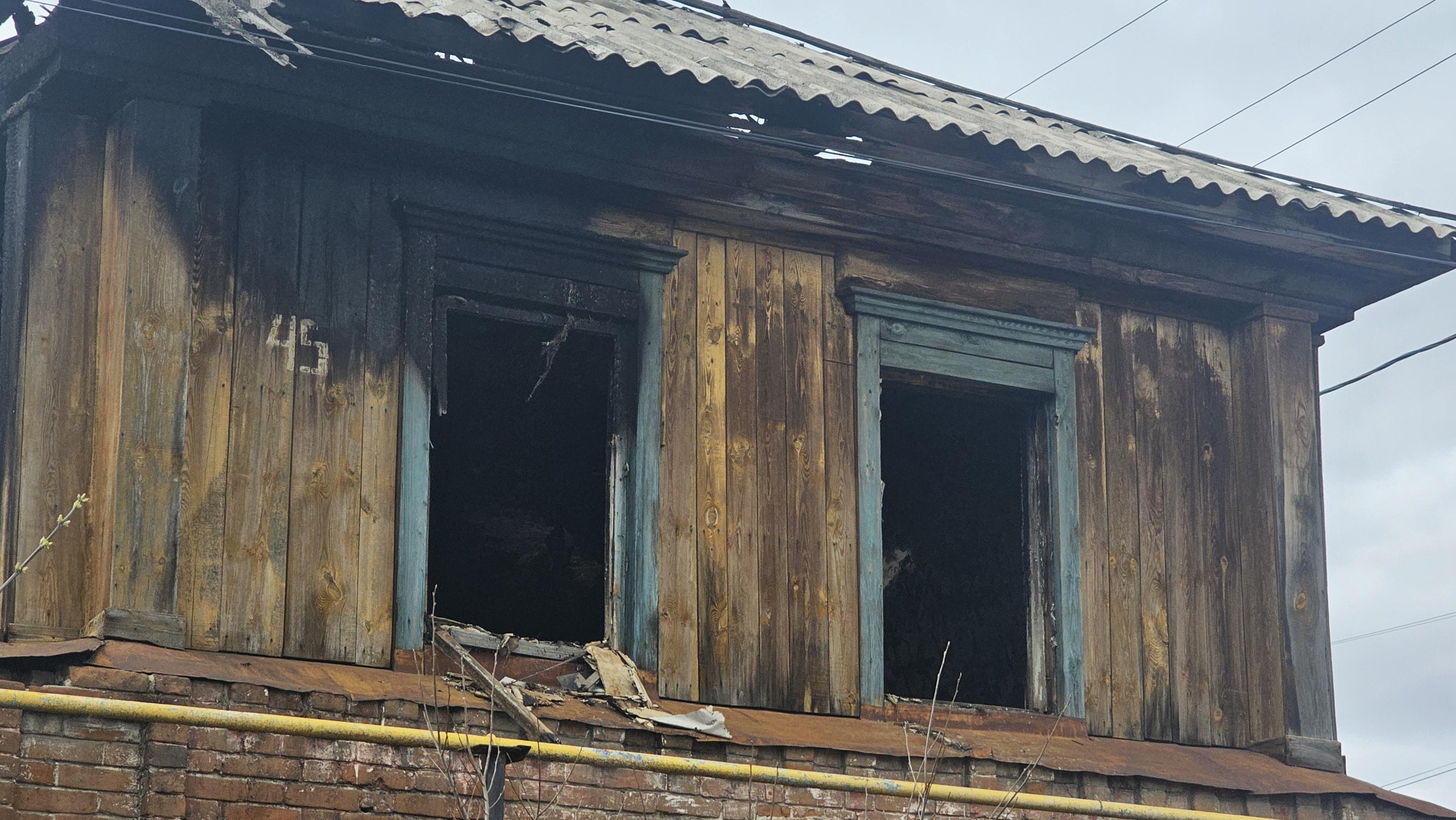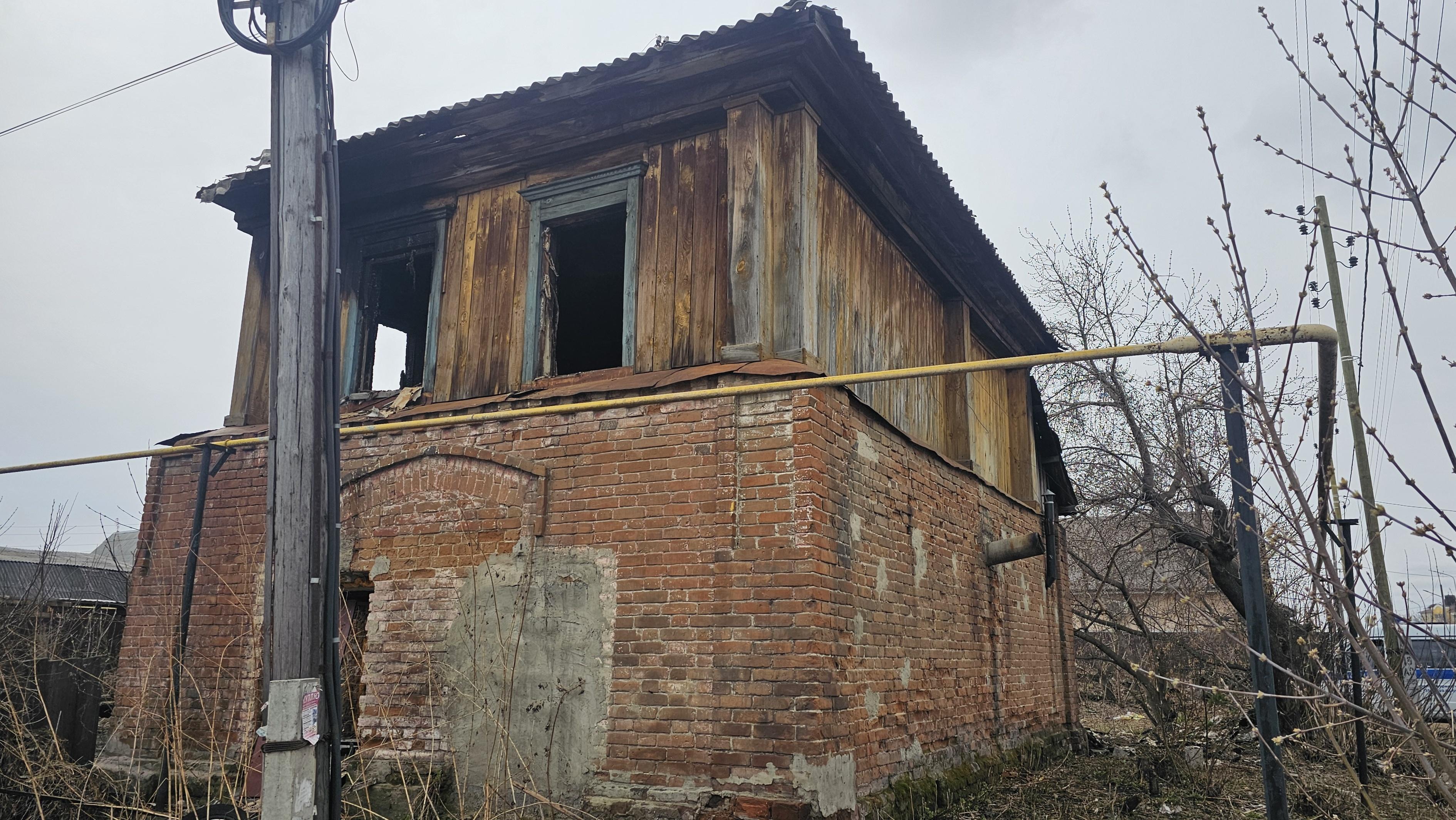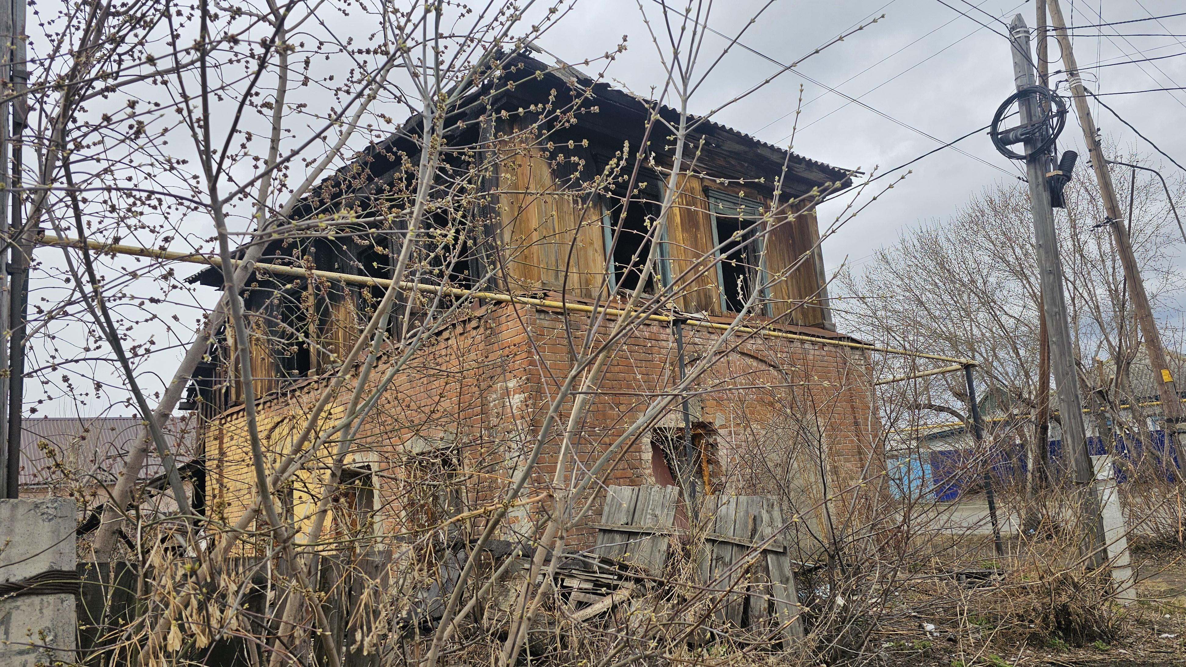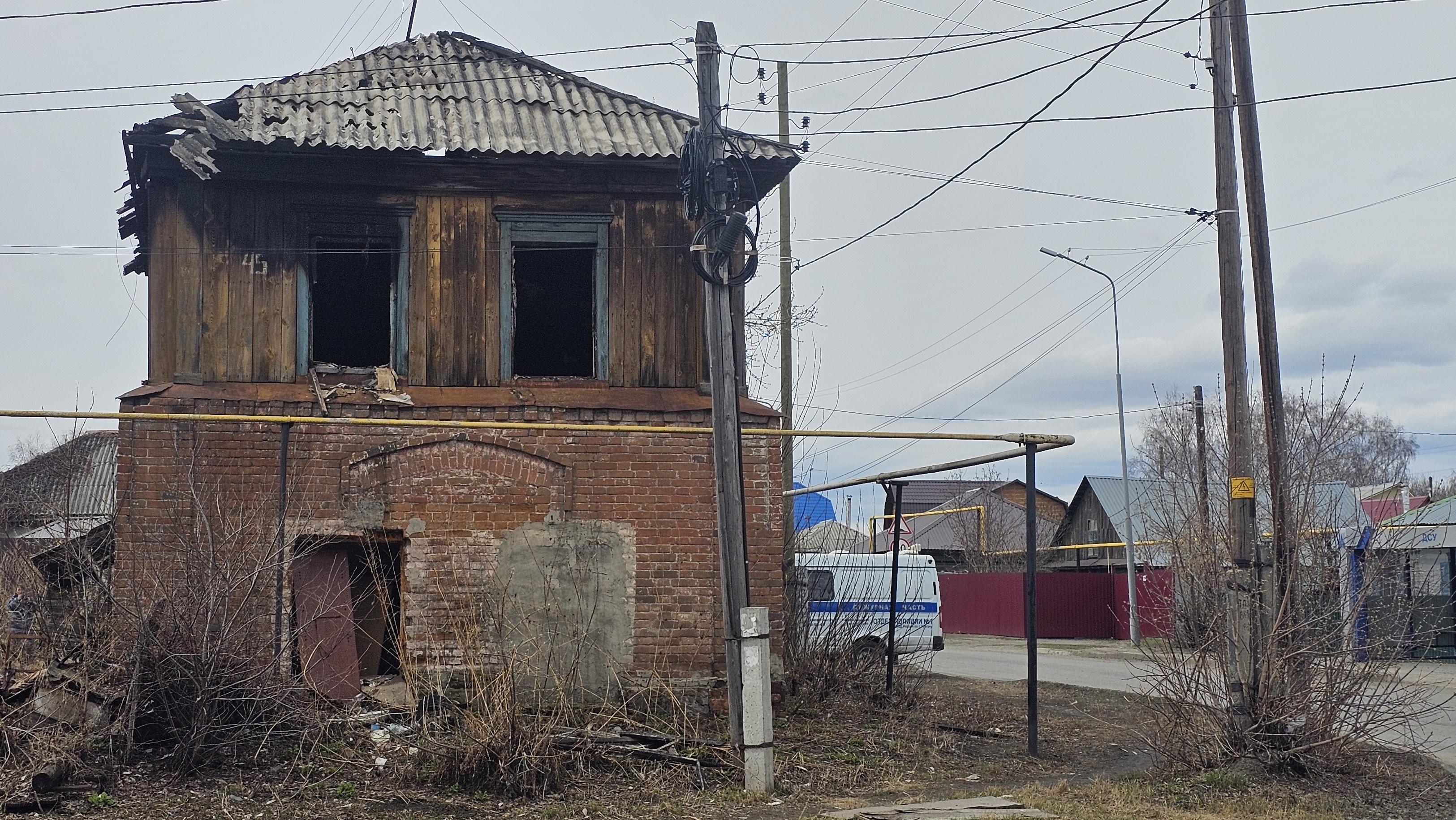 Пожар вспыхнул 8 апреля в заброшенном доме на улице Орджоникидзе, 45, расположенном в микрорайоне Малое Чаусово Кургана. Огонь охватил второй этаж, повредив деревянные конструкции и оставив на фасаде четкие следы гари и копоти. Кирпичный первый этаж не пострадал, а сухие заросли и деревянный забор вокруг дома уцелели, что предотвратило потенциальное распространение пламени на соседние частные дома.