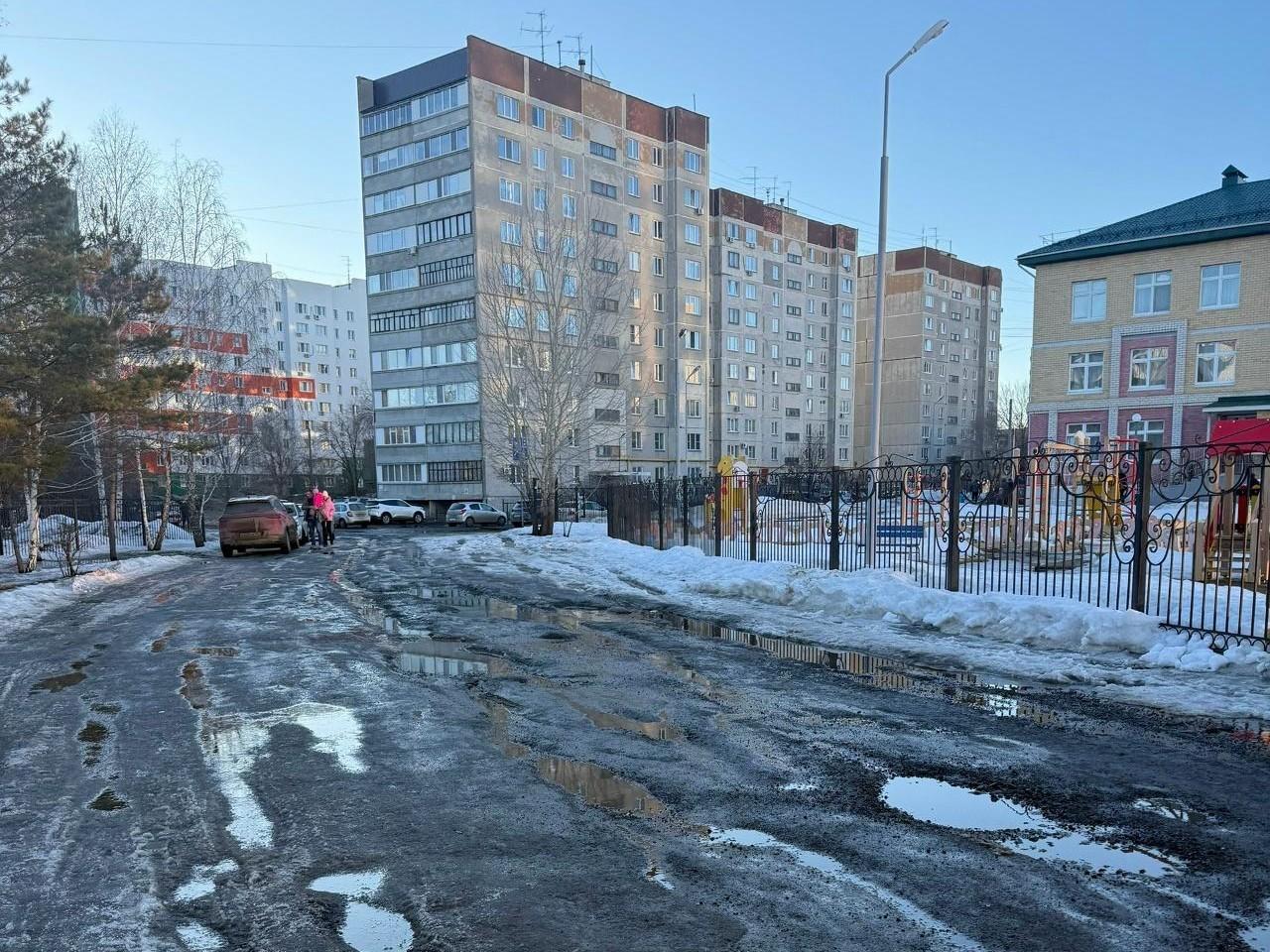 Разбитая дорога в 5-м микрорайоне Заозерного, по которой дети ходят в школы и детский сад.