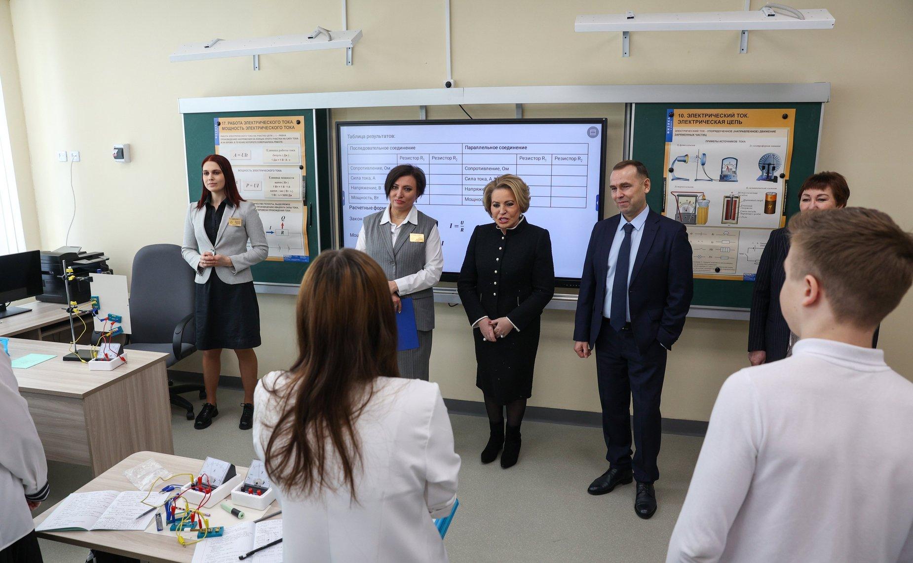 25 марта первой точкой маршрута стала открытая в 2024 году школа №52. Матвиенко осмотрела столовую, актовый зал и учебные классы, а также обсудила со старшеклассниками тему телефонного мошенничества.