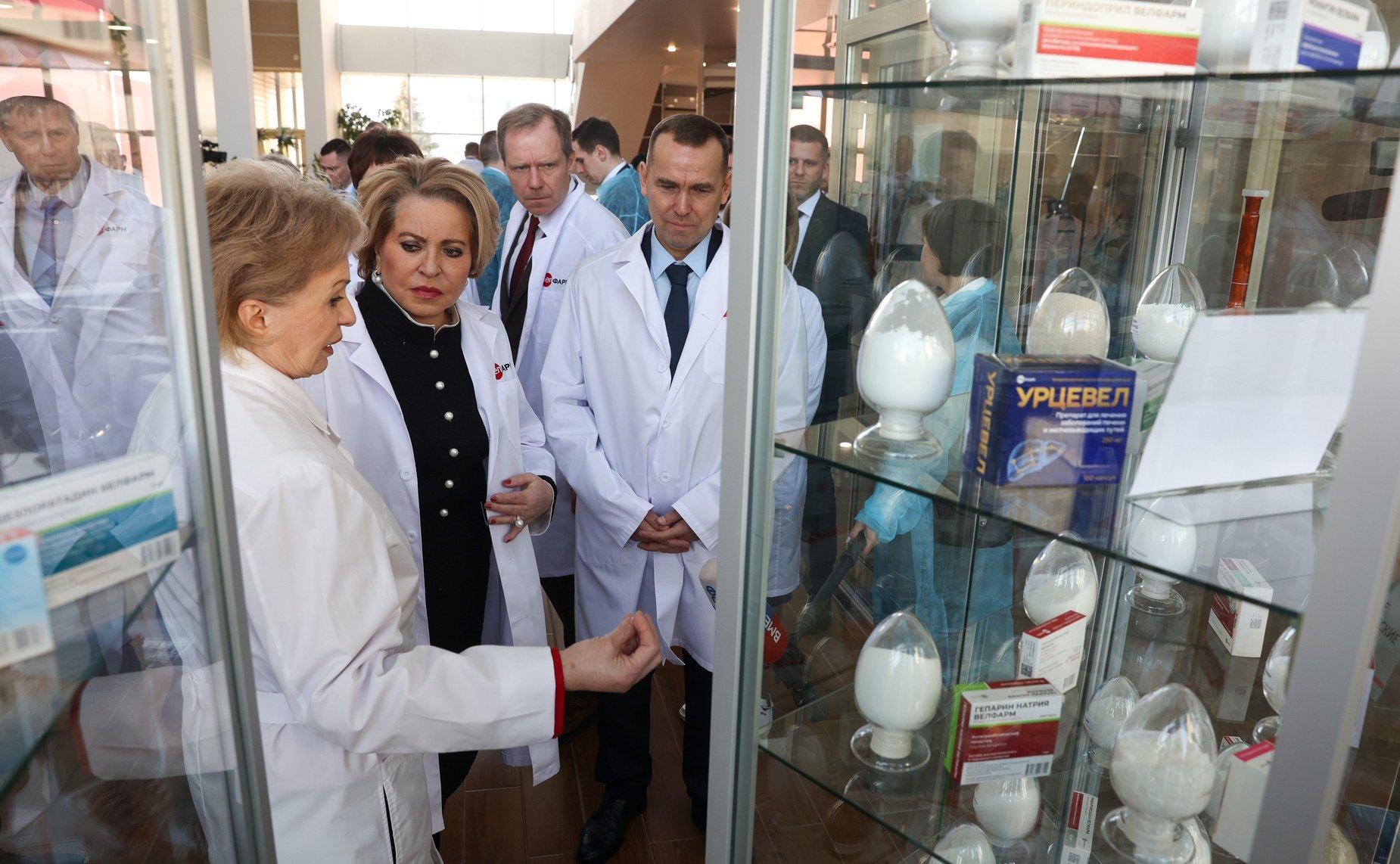 Следующим объектом посещения стал фармацевтический завод «Велфарм». Его президент Людмила Щербакова рассказала о производстве субстанций для импортозамещения лекарств и необходимости наращивания мощностей. Валентина Матвиенко заявила о готовности власти поддержать это направление.