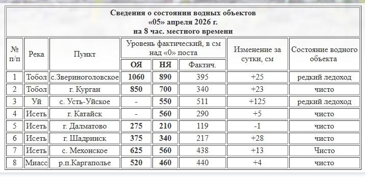 В Зауралье продолжился подъем воды в основных реках. Наиболее значительный прирост зафиксирован на реке Уй в Целинном округе.