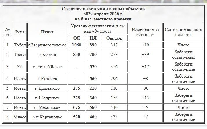 В селе Звериноголовское прирост за тот же период достиг 19 сантиметров, а общий уровень реки превысил три метра, достигнув 317 сантиметров.
