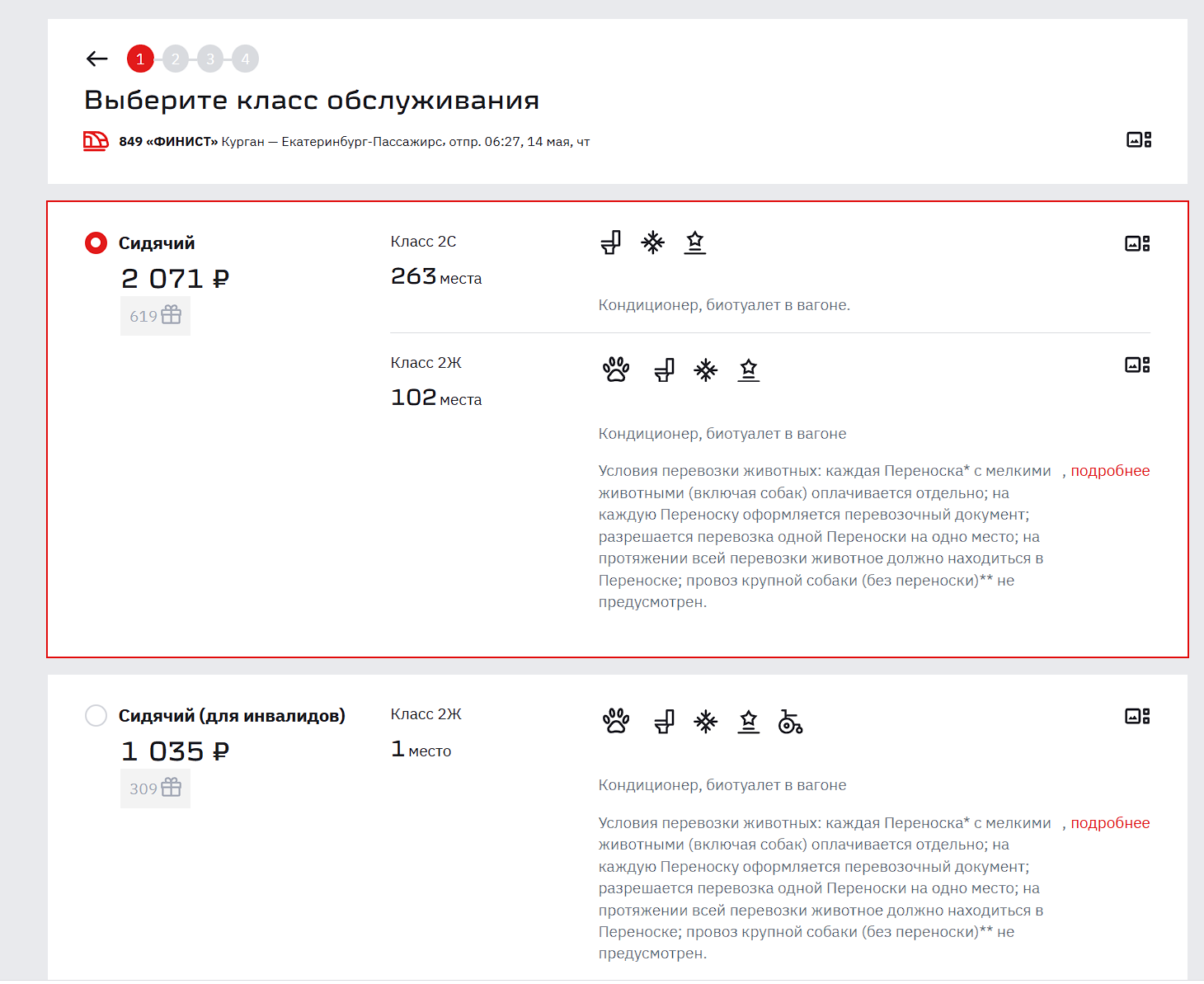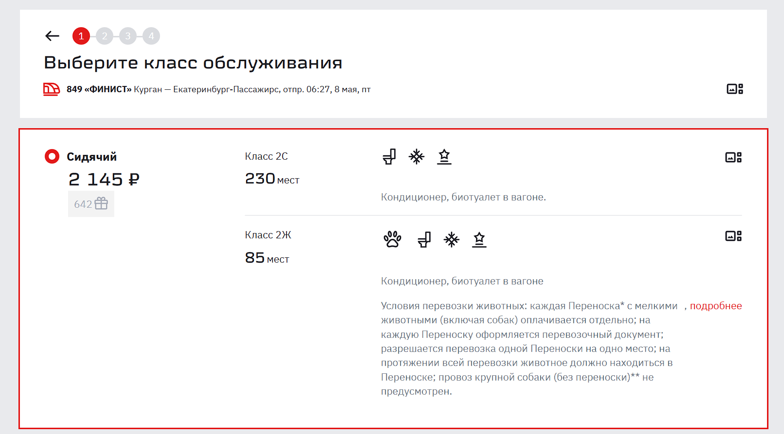 Стоимость билетов на скоростной электропоезд «Финист» №849, курсирующий между Курганом и Екатеринбургом, выросла. На 30 апреля и 8 мая проезд обойдётся в 2145 рублей. Ещё 29 апреля, как отмечает один из пассажиров, билет можно было приобрести за 1772 рубля, а в октябре прошлого года — за 1507 рублей.
