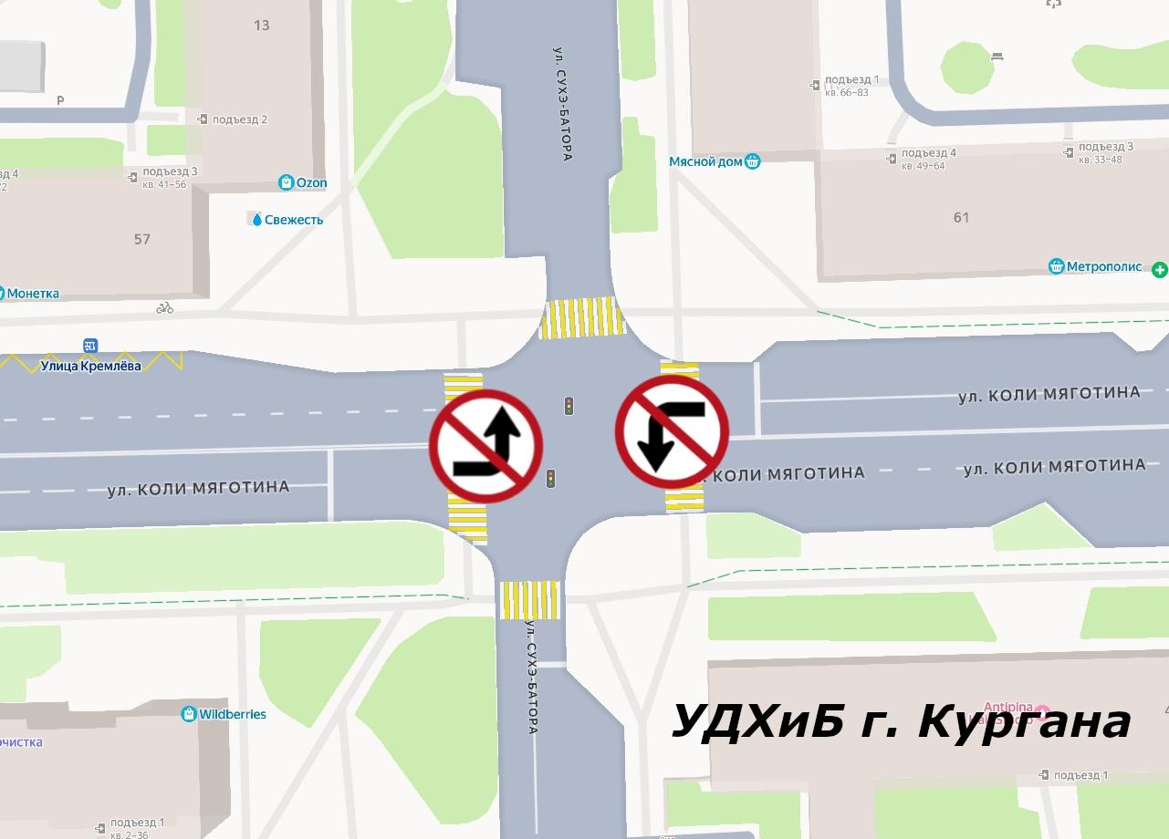В Кургане на время ремонта улицы Свердлова запретили левый поворот с улицы К. Мяготина на улицу С. Батора. Данную информацию подтвердило МКУ «Управление дорожного хозяйства и благоустройства города».